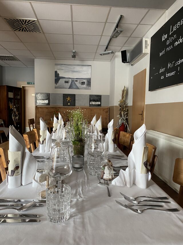 Stellen Sie Ihr Auto ganz komfortabel auf unseren kostenlosen Parkplätzen ab. Damit auch Hundebesitzer in den Genuss eines Aufenthalts bei uns kommen, sind Haustiere bei uns genauso willkommen. Bitte beachten Sie unsere Öffnungszeiten und schauen Sie einfach bei uns vorbei. Wir freuen uns auf Sie. Für Hochzeiten, Geburtstage oder eine schöne Familienfeier – unser Catering-Service macht Ihr Event unvergesslich. Steht bei Ihnen ein Ereignis an, das Sie gerne in größerer Gesellschaft feiern mögen? Buchen Sie unsere Räume – wir freuen uns auf Sie. Traumhochzeiten in einem tollen Ambiente – wir sind auf große Veranstaltungen ausgerichtet und helfen Ihnen gern bei der Gestaltung Ihres großen Tages. Montag ist bei uns Ruhetag. An allen anderen Tagen bedienen wir Sie gerne.